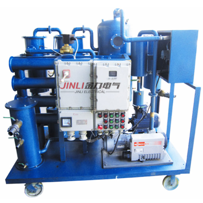 汽輪機、液壓機在運行中,塵埃、雜質(磨損的金屬顆粒)、水份,會混入設備油箱中,引起油嚴重乳化,使設備的潤滑性能降低,嚴重者將燒壞軸瓦、缸體,堵塞液壓系統集成塊,使壓力達不到額定值,影響主機的運行。當每次更換新油,成本增加原因是主缸體,或油箱四壁有較重油泥,不及時循環過濾。就是加了新油,油箱內油質仍很差,因此用濾油機并聯在主油箱內,循環過濾數遍,可將主機所有死角,過濾更徹底,使主機油質始終保持良好狀態。