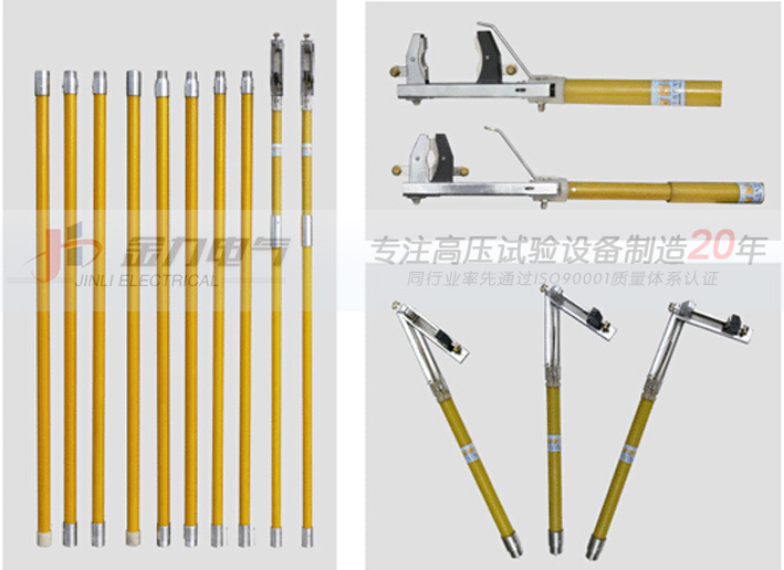 4、JL-1168系列高空測試鉗可用于500KV以下的高壓場所進行測試,測試高度可由絕緣操作桿任意添加和插接。